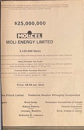 Moli Energy - the Canadian Pioneer of Rechargeable Lithium Battery Technology.